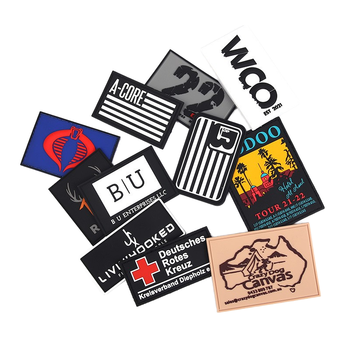 Tarik ritsleting, ritsleting, label tenun, tambalan bordir, kancing,